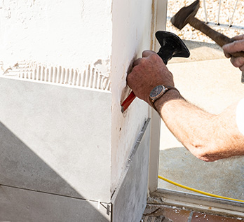 一般出現(xiàn)滲水的問題,首先我們一定要對滲水點進行排查,找到滲水點之后,順著裂縫將其鑿開,然后將里面的一些碎渣全部都清洗干凈。再用切割機將抹灰層全部都切割開來,在切割的過程當中一定要注意力度,防止震動太猛產(chǎn)生新的空鼓和開裂現(xiàn)象。