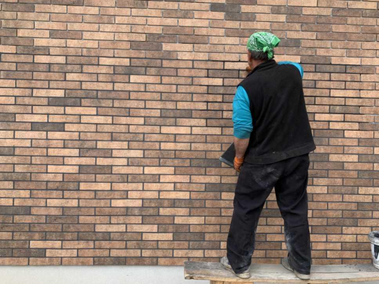 粘結(jié)面應(yīng)避免有凸起和凹凸不平的部位出現(xiàn),并應(yīng)將已填塞的保溫料清除干凈并進(jìn)行適當(dāng)處理,同時(shí)用水平尺或橡皮刮板進(jìn)行修整,使飾面膠面平整、光滑、無麻面、脫皮、裂縫和氣泡。修補(bǔ)后進(jìn)行涂刷界面劑后干燥24 h以上才能進(jìn)行粘貼作業(yè)。