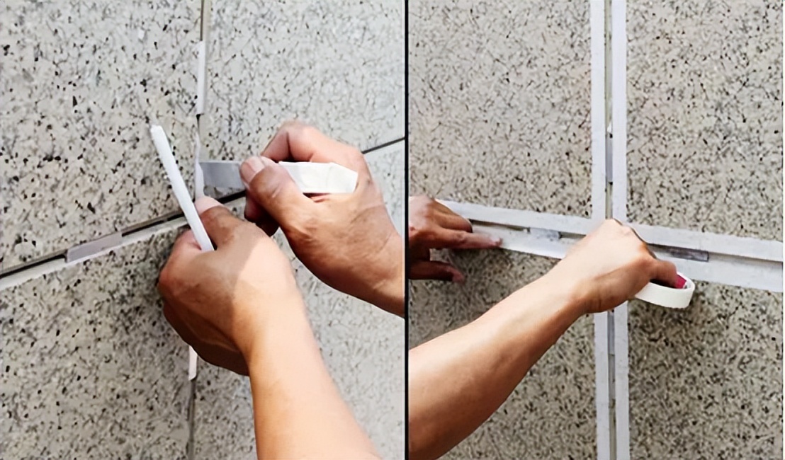 在分隔的縫隙內(nèi),塞填保溫填縫條(泡沫填縫條),縫隙兩端粘貼美紋紙。