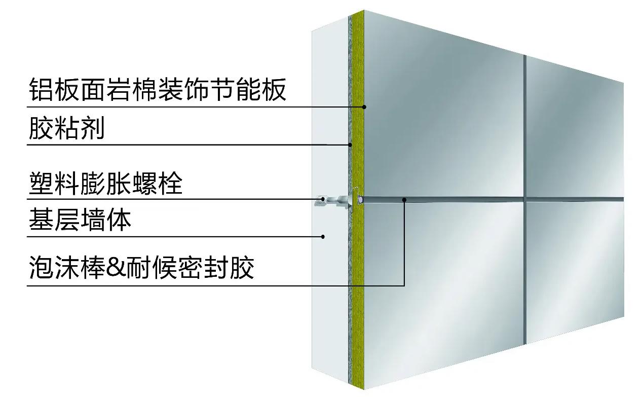 鋁板保溫一體板主要工序是粘接+錨固,施工簡單、快速,周期短、交付快。