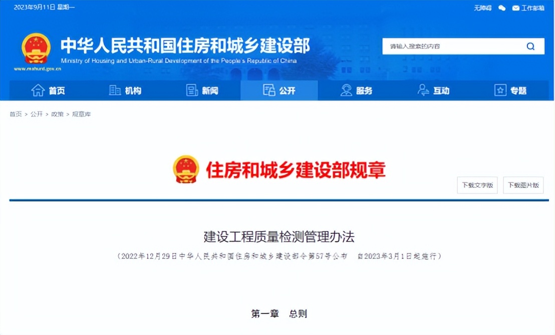 2022年12月29日中華人民共和國住房和城鄉(xiāng)建設(shè)部令第57號(hào)公布《建設(shè)工程質(zhì)量檢測管理辦法》,自2023年3月1日起正式施行。