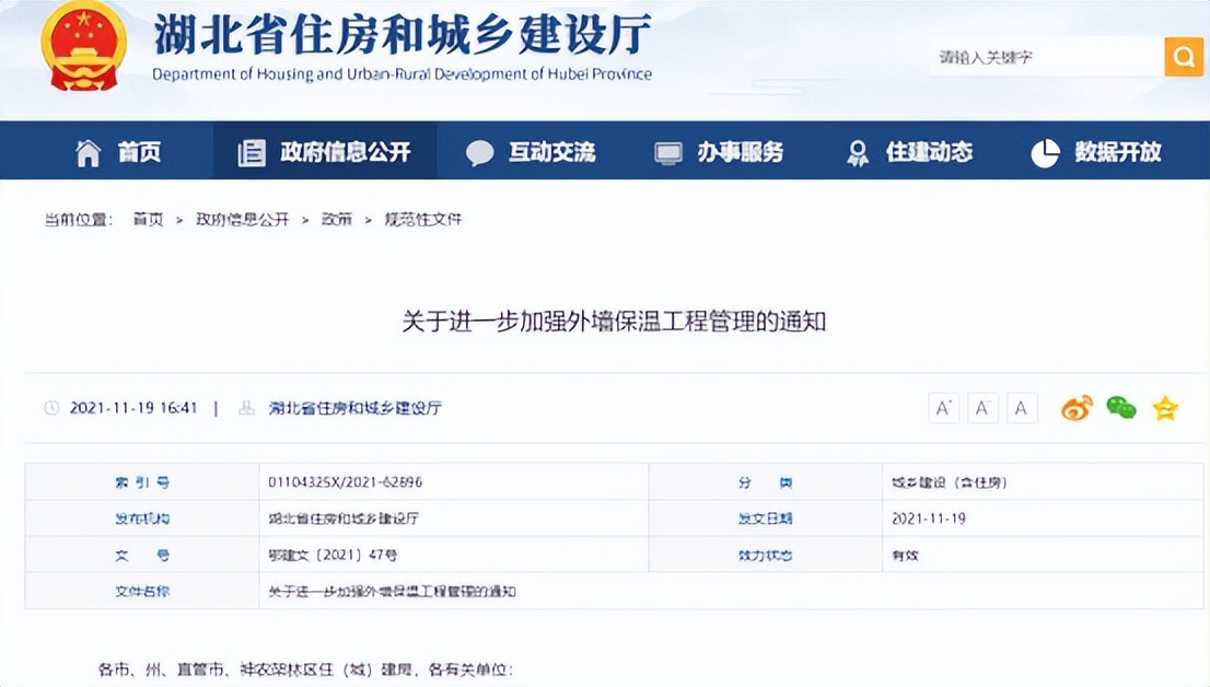 《關(guān)于進(jìn)一步加強(qiáng)外墻保溫工程管理的通知》鄂建文〔2021〕47號(hào)