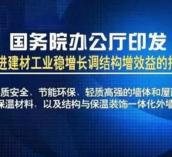 國(guó)務(wù)院辦公廳印發(fā)《關(guān)于促進(jìn)建材工業(yè)穩(wěn)增長(zhǎng)調(diào)結(jié)構(gòu)增效益的指導(dǎo)意見(jiàn)》中,明確指出“發(fā)展本質(zhì)安全、節(jié)能環(huán)保、輕質(zhì)高強(qiáng)的墻體和屋面材料、 外墻保溫材料,以及結(jié)構(gòu)與保溫裝飾一體化外墻板”。