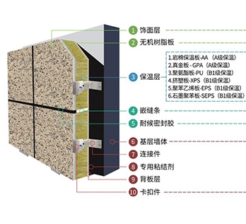 外墻保溫一體板是一種用于建筑物外墻保溫裝飾的節(jié)能材料,由保溫層、與飾面層經(jīng)過工廠化生產(chǎn),壓制成型。